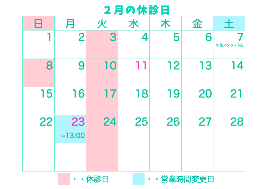 2月休診日、診療時間変更日ご案内![]()